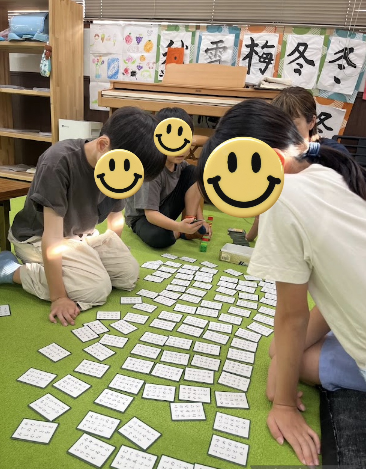 また百人一首では、初めて百人一首に触れる低学年も「やってみる」と参加して、一生懸命平仮名を目で追う姿が見られます。