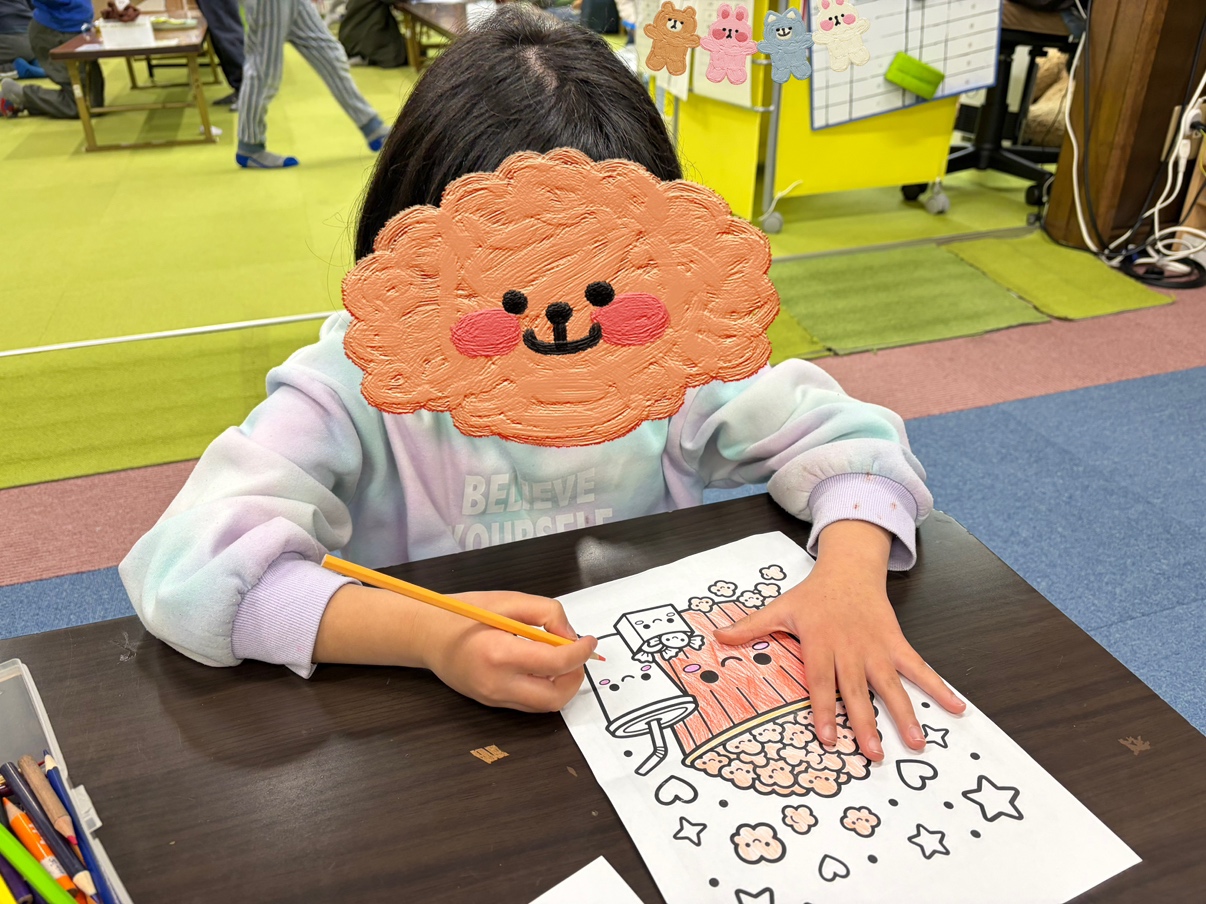 ペン、色鉛筆、クーピーなどを使って1つひとつとても丁寧に仕上げる姿が見られます🍀